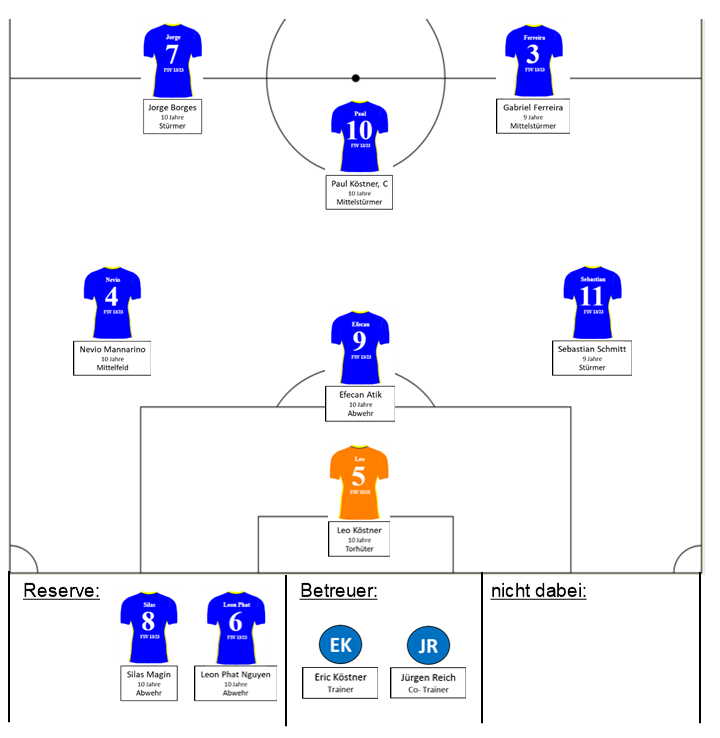 3x Jorge Rodrigues Borges, Efecan A., Sebastian S., Paul Köstner, Gabriel Ferreira, Leon N.Zuschauer
