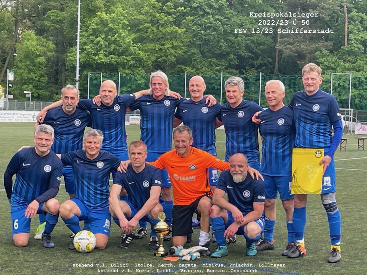 Beim ungefährdeten 5:0 Sieg der Ü50-Vertretung der AH im Kreispokalfinale gegen die SG Gäu gelang Uwe Croissant auf dem Kunstrasenplatz des VfB Haßloch bereits in der zweiten Minute die Führung. Ray Stolze legte schon bald darauf zum 2:0 nach. In der zweiten Hälfte konnten die FSV´ler noch drei weitere Treffer (2x Croissant, 1x Stolze) zum letztlich klaren Erfolg erzielen. Damit qualifizierte sich die Ü50 erstmals für die Endrunde der Südwestmeisterschaft, die am 10.06.2023 in Idar-Obersein stattfindet.