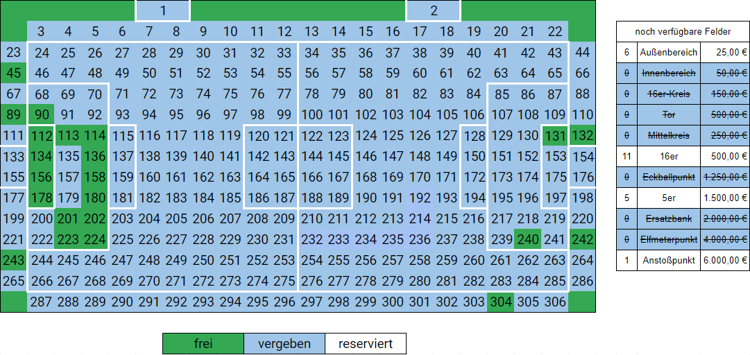 Hier oder auch über unsere Social Media Plattformen via Facebook und Instagram erfahrt ihr immer aktuell, welche Felder noch verfügbar sind.